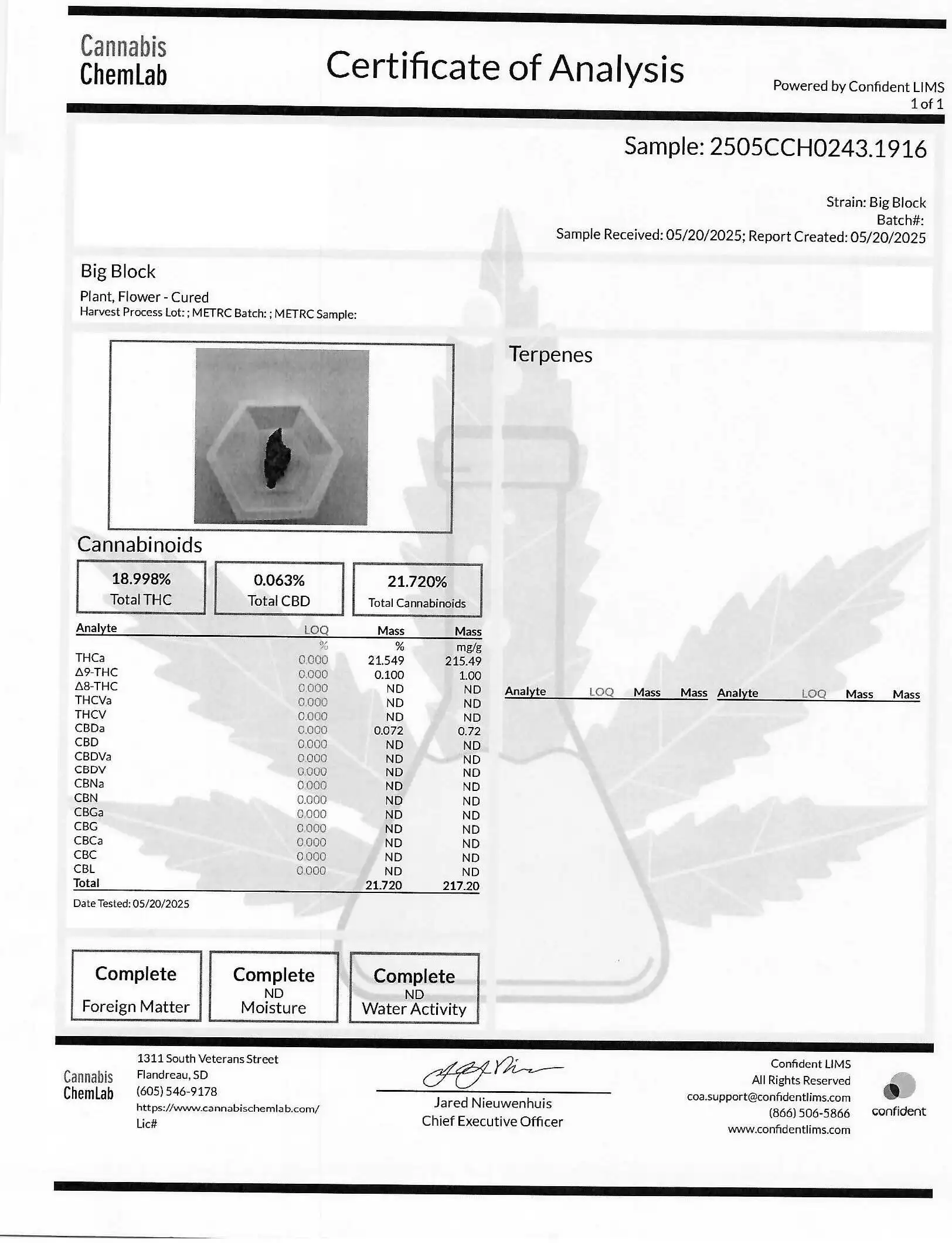 Buds range in size from medium to small and are slowly cold cured for the perfect cure and moisture content.Â