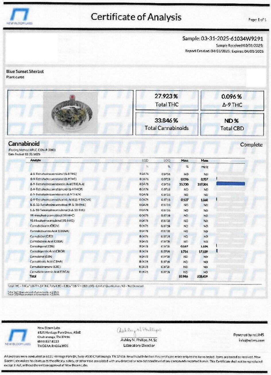 Blue Sunset Sherbet Cannabinoids & Terpenes