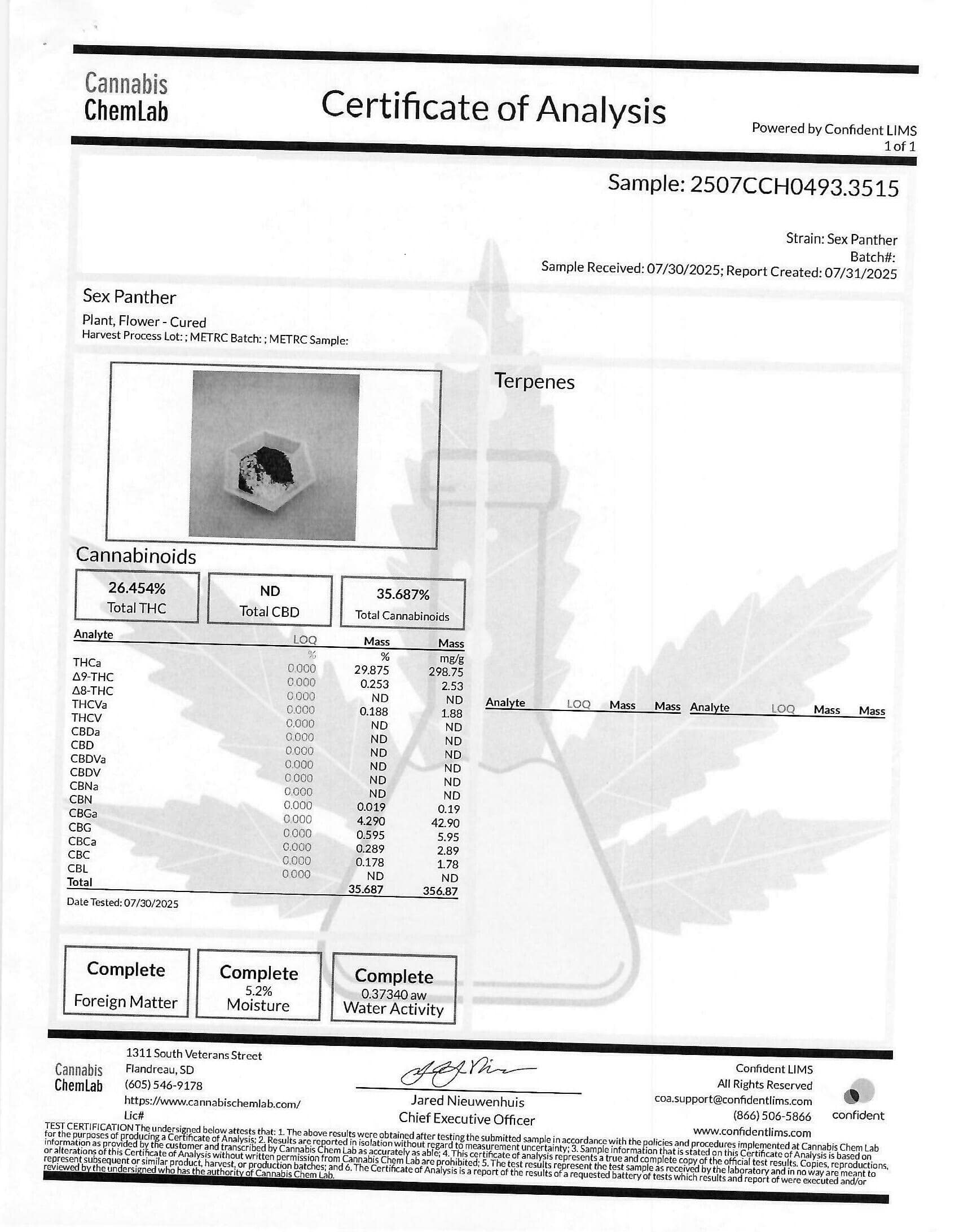 Sex Panther is a THCa hemp strain that is known for it’s sativa-sided effects and is generally used for a daily dose of motivational energy. Sex Panther was one of our OG strains and it feels good to welcome back the new and improved version. This strain’s flavor profile consists of mainly pine and citrus notes with the occasional sweet note.Â