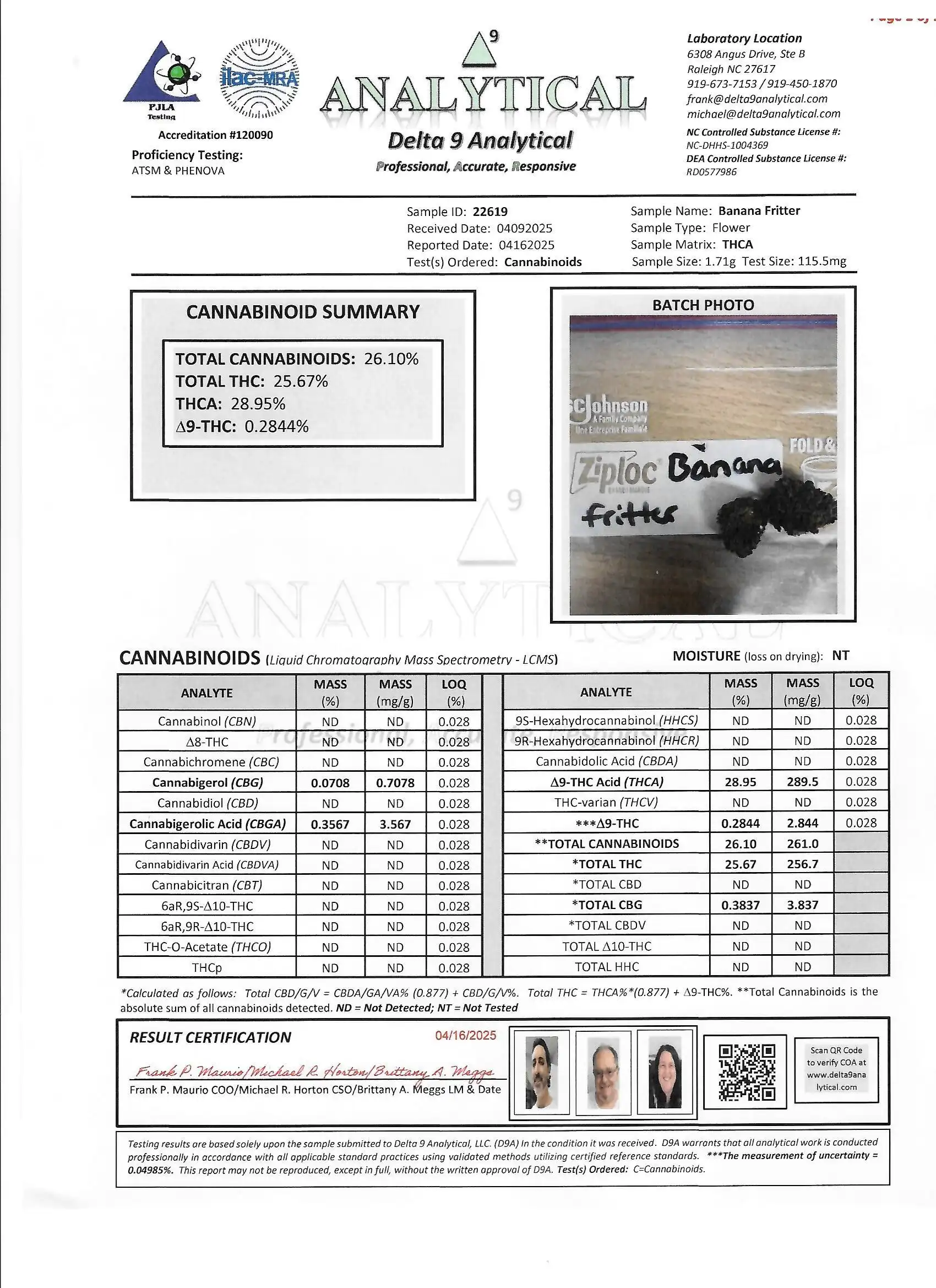 Banana Fritter Cannabinoids & Terpenes